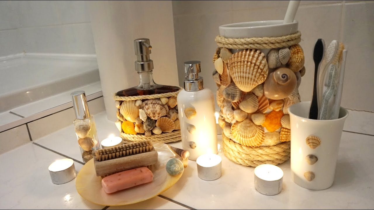 Dekoracje z muszelek to naturalny sposób na udekorowanie łazienki. Nadają pomieszczeniu wakacyjnego, morskiego klimatu. Można z nich wykonać lustro, ramki na zdjęcia, świeczniki, pojemniki, mydelniczkę. Muszelki często łączy się z mchem, sznurkiem jutowym lub kamieniami. Łatwe w przygotowaniu – wystarczy klej na gorąco.