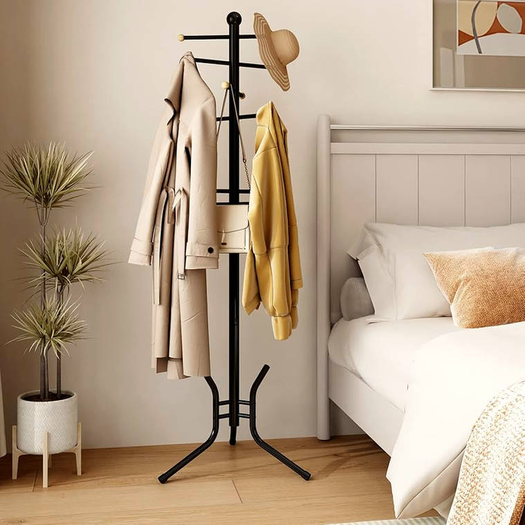 Wieszak stojący na ubrania to pożyteczny mebel do przedpokoju lub garderoby. Posiada haczyki lub drążki do zawieszania odzieży. Często wyposażony w półkę na buty. Dostępny w różnych szykach i materiałach, np. drewno, metal.